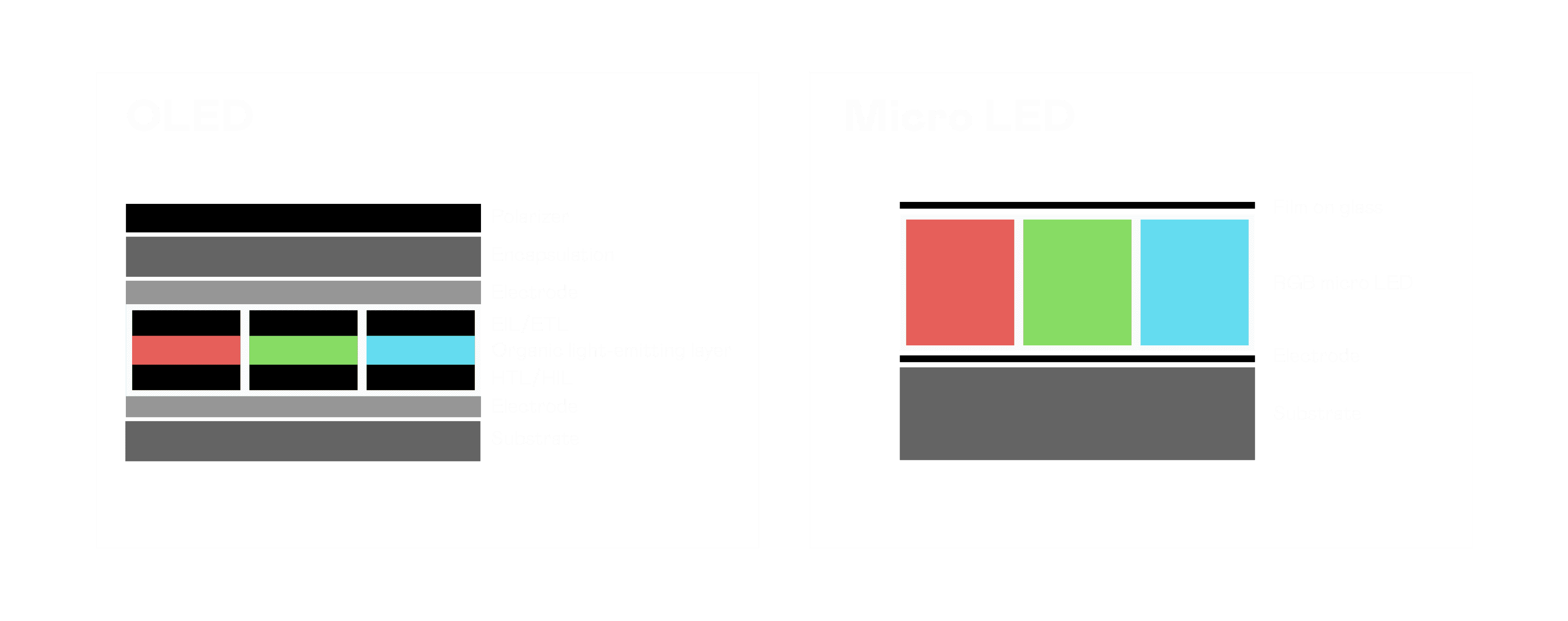 以 LED 做为显示画素,,可让 LED 的发光效率发挥到极致,,,从而让显示器具备优异的亮度表现,,,,不论是在户外或室内,,均具备出众的显示效果。。同时,,,,与使用有机材料的 OLED 相比,,LED 具备更稳定、、、寿命更长的特性,,,,不仅不会有画面烙印问题,,,,而且更不容易出现故障、、坏点。。。。