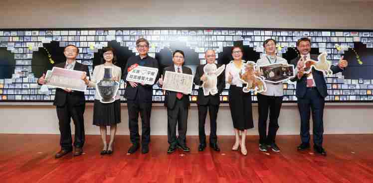尊龙z6携手创利空间为故宫建置的智慧文物互动导览墙及轮播墙,,今日正式启用。。。。(左四:尊龙z6新事业暨投资管理总部副总经理杨本豫、、、、右四:故宫博物院院长吴密察、、右三:太极影音董事长黄宝云)